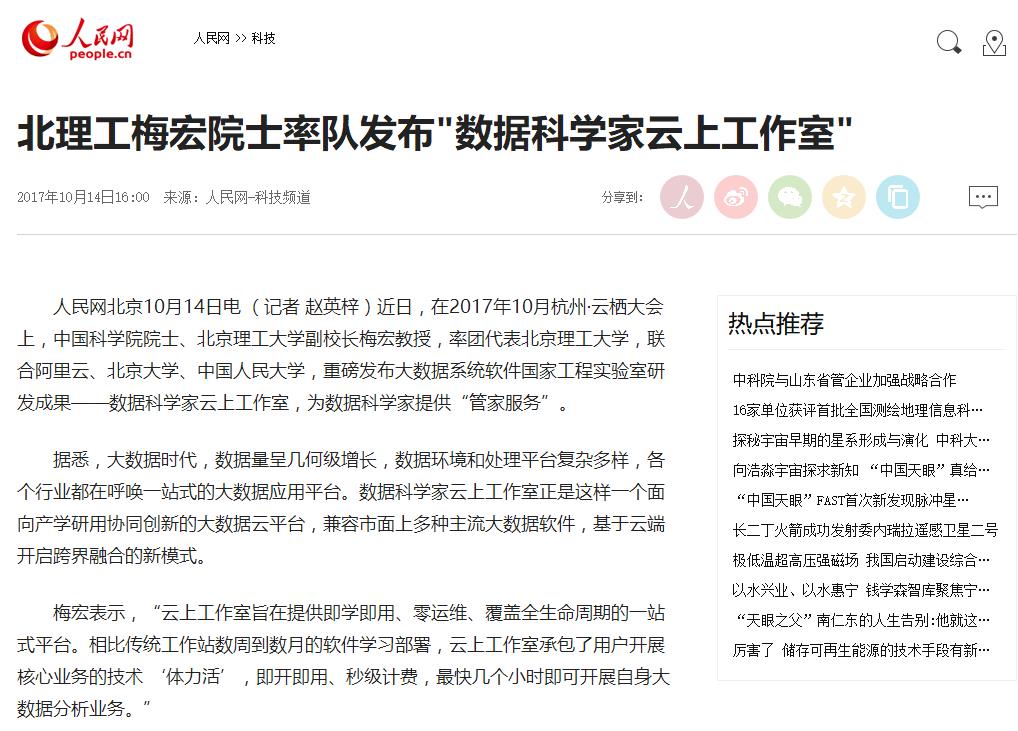 【人民網】北理工梅宏院士率隊發布"數據科學家云上工作室"