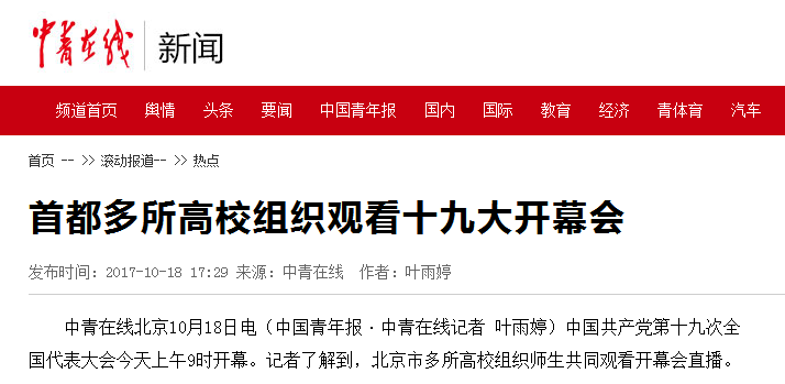 【中青在線】首都多所高校組織觀看十九大開幕會