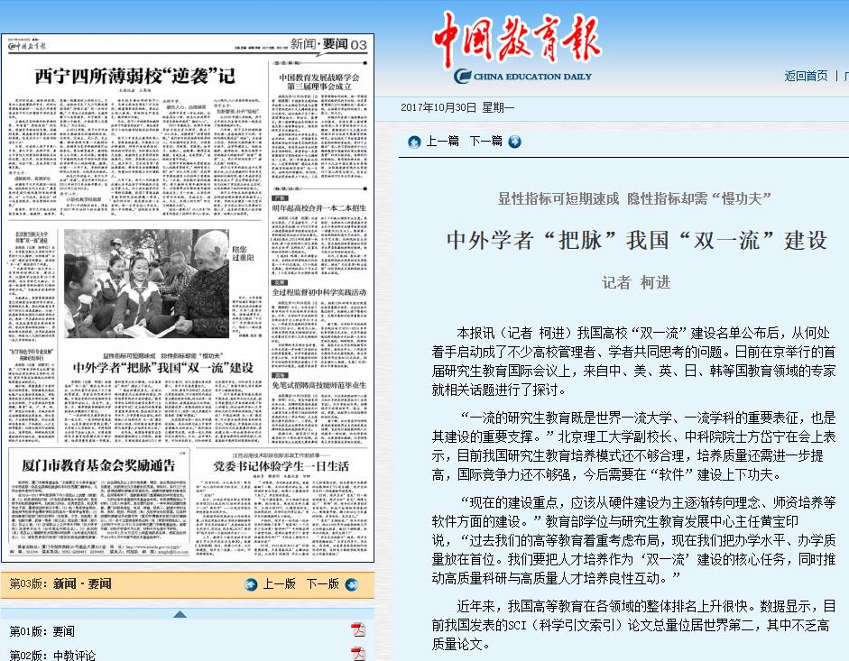 【中國教育報】中外學者“把脈”我國“雙一流”建設