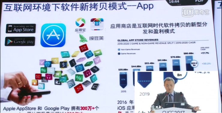 我們中國學者自己定義一個詞:網構軟件。指的就是面向互聯網計算的軟件新范型。這些新范型是什么,總結有幾個性質,實體的自主性,實體對環境的情景感知,實體之間的自主協同,實體的在線演化,以及可信性需求。簡單來說,軟件呈現網絡化體系結構,基于網絡進行開發,通過網絡交付分發并提供服務,這就是軟件的服務化。軟件和硬件相比,同樣都作為功能性產品,但軟件這種工具和互聯網結合就能夠實現一種真正的服務化。緊接著移動互聯網的產生,又產生了一種新的模式,這就是APP。蘋果商店擁有300萬+個APP,累計下載量超過1500億次。這個時候創造了一種新的模式,客戶端要和服務器端合起來完成一件任務,他也是一種拷貝,不過是一種新的拷貝方式。互聯網深刻改變了人類社會和生活模式,而互聯網的核心價值是連接,軟件是實現互聯網核心價值的重要使能技術。硬件連接雖然很重要,但最終的靈活連接還要靠軟件。