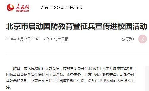 【人民網】北京市啟動國防教育暨征兵宣傳進北理校園活動