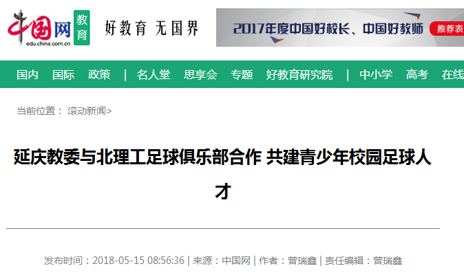 【中國網(wǎng)】延慶教委與北理工足球俱樂部合作 共建青少年校園足球人才