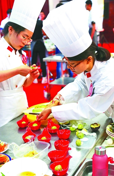 5月27日,北京理工大學(xué)舉辦“創(chuàng)藝融愛——烹出新主意,飪你來出奇”大學(xué)生廚藝大賽。參賽選手通過現(xiàn)場菜品制作,展示了對中華美食的理解、創(chuàng)新與創(chuàng)造。圖為學(xué)生們在制作、展示菜品。