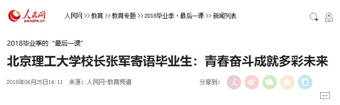 【人民網(wǎng)】北京理工大學校長張軍寄語畢業(yè)生:青春奮斗成就多彩未來