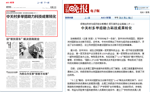【法制晚報】北理工高度重視科技成果轉化工作并取得突出成效