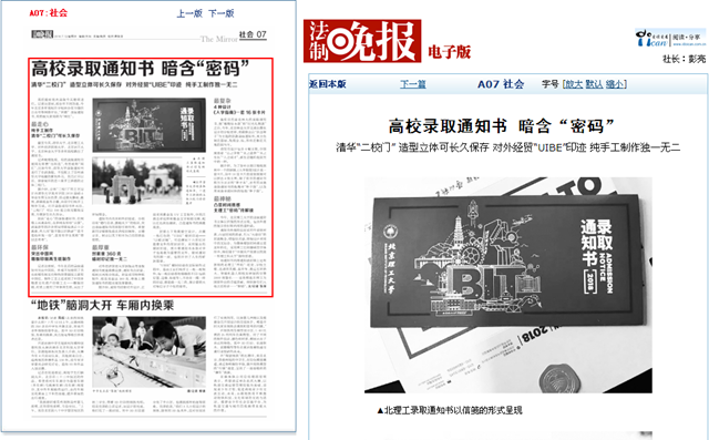 【法制晚報】北理工錄取通知書里的“秘密”