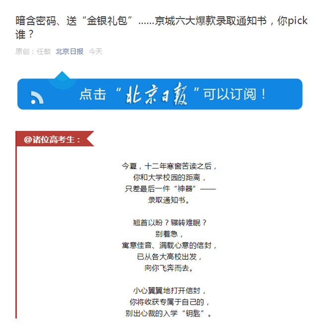 原文標題:暗含密碼、送“金銀禮包”......京城六大爆款錄取通知書,你pick誰?