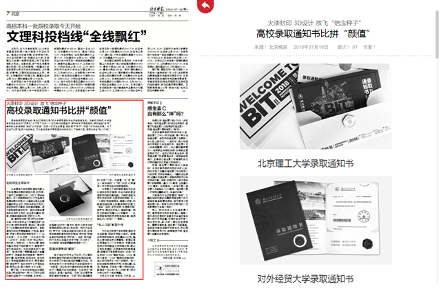 【北京晚報】印著獨特北理工“密碼”的錄取通知書