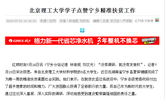 【紅網】北京理工大學學子點贊寧鄉精準扶貧工作