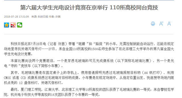 【科技日報】第六屆大學生光電設計競賽在北京理工大學舉行 110所高校同臺競技