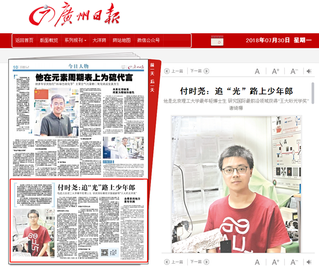 【廣州日報】北京理工大學博士生付時堯:追“光”路上少年郎