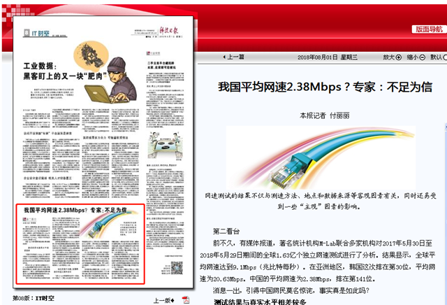 【科技日報】我國平均網(wǎng)速2.38Mbps?專家:不足為信