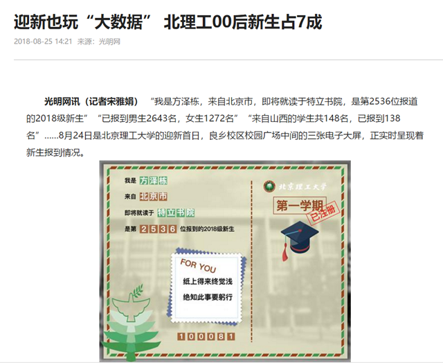 【光明網(wǎng)】迎新也玩“大數(shù)據(jù)” 北理工00后新生占7成