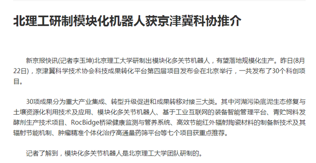 【新京報】北理工研制模塊化機器人獲京津冀科協推介