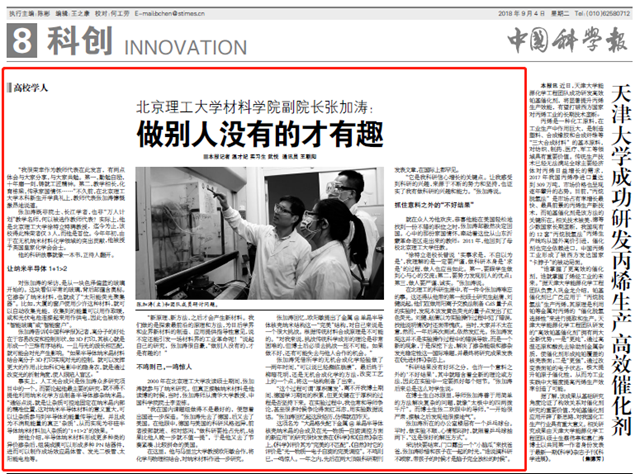 【中國科學報】北京理工大學材料學院副院長張加濤:做別人沒有的才有趣