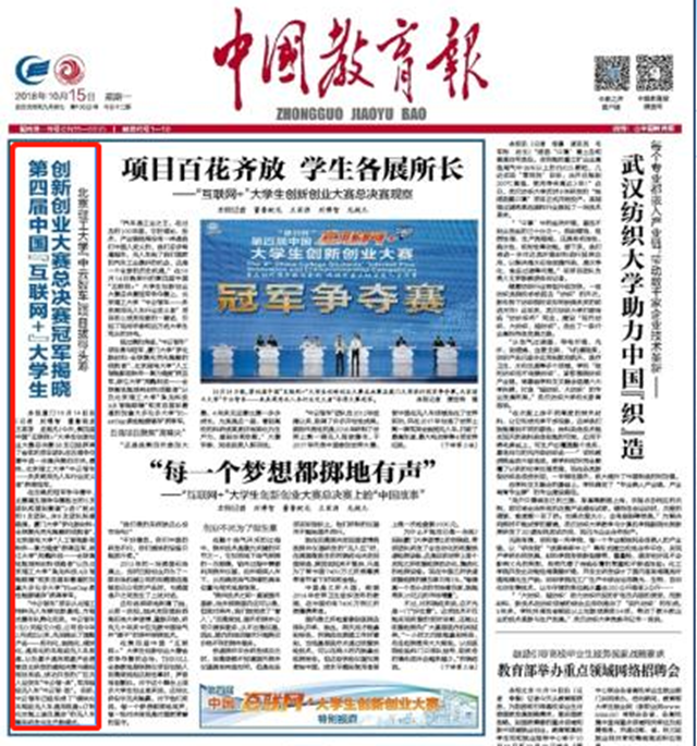 【中國教育報】第四屆中國“互聯網+”大學生創新創業大賽總決賽冠軍揭曉