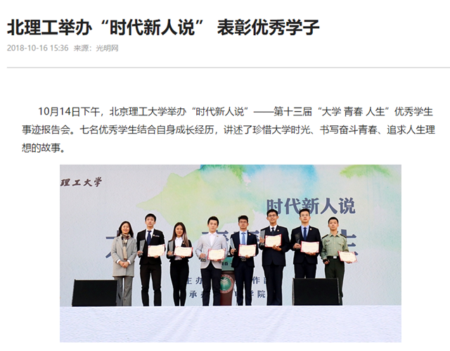 【光明網(wǎng)】北理工舉辦“時代新人說” 表彰優(yōu)秀學子