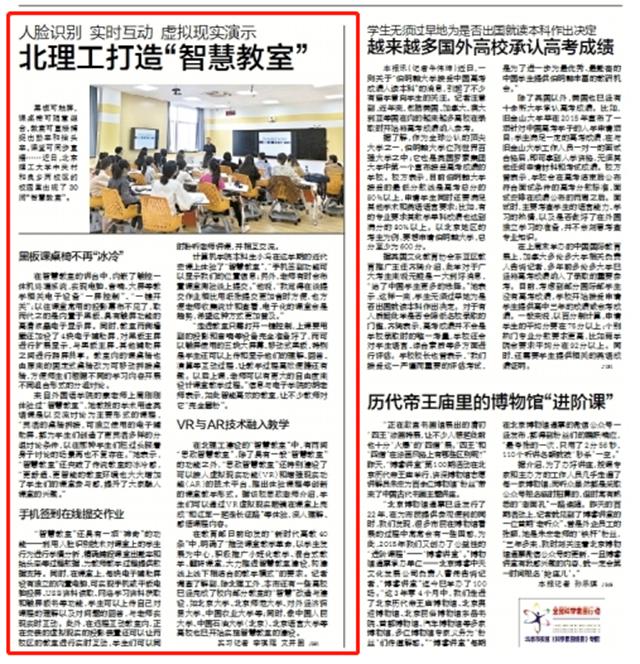 在教育部日前印發的“新時代高教40條”中,明確了“推動課堂教學革命,以學生發展為中心,積極推廣小班化教學、混合式教學、翻轉課堂,大力推進智慧教室建設,構建線上線下相結合的教學模式”的要求。記者調查了解到,除北理工外,本市還有一些高校已經完成了校內部分教室的“智慧”改造與建設,如北京大學、北京師范大學、對外經濟貿易大學、中國農業大學等;同時,像中國人民大學、中國石油大學(北京)、北京語言大學等高校也已開始實施智慧教室的建設。