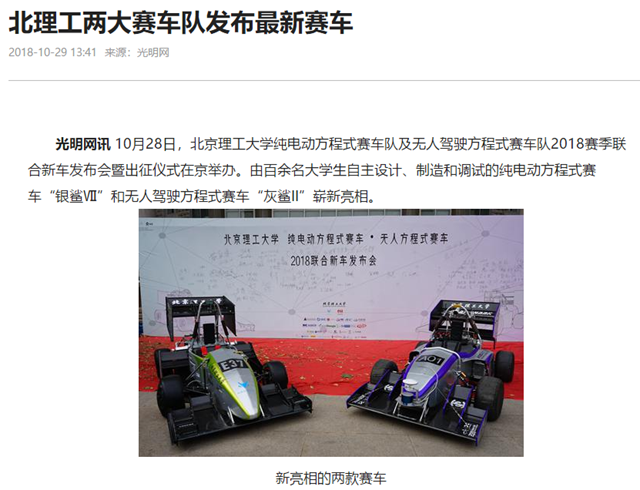 【光明網】北理工兩大賽車隊發布最新賽車