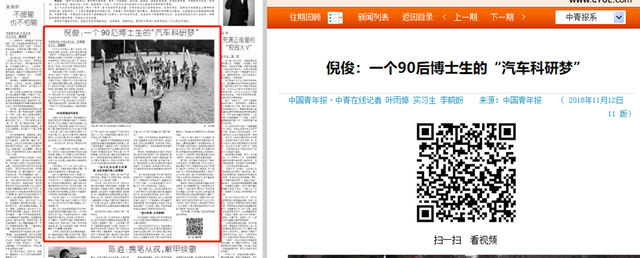 【中國青年報】倪俊:一個90后博士生的“汽車科研夢”
