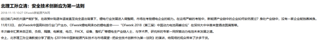 “安全的電池是保證電動汽車安全的重要一環。”在演講的尾聲,孫教授這樣認為。基于液態電解質的動力電池,有機電解液的安全是個大問題,無機的液態電池漏液也存在安全隱患。而2019年的大趨勢,他認為是采用單體安全性更高的固態電解質電池或三元材料電池。此外,他還提醒企業,在追求高比能量密度的三元電池時,尤其要注意電池的安全問題。