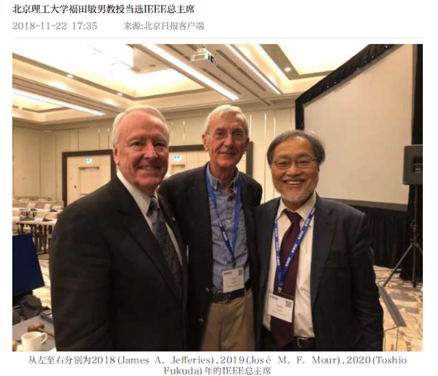 【北京日報客戶端】北京理工大學福田敏男教授當選IEEE總主席
