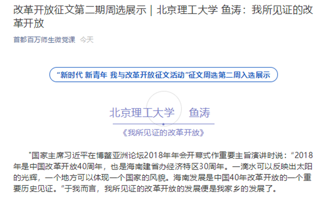【首都百萬師生微黨課】北京理工大學魚濤:我所見證的改革開放