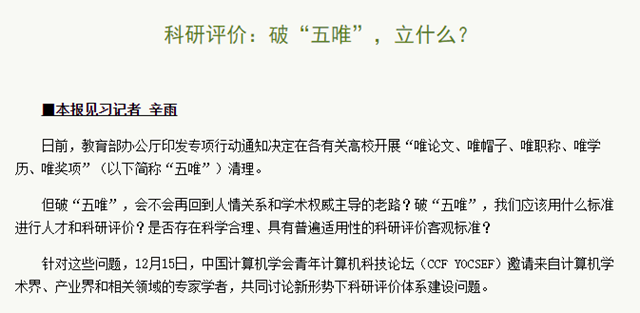 【中國科學(xué)報】科研評價:破“五唯”,立什么?
