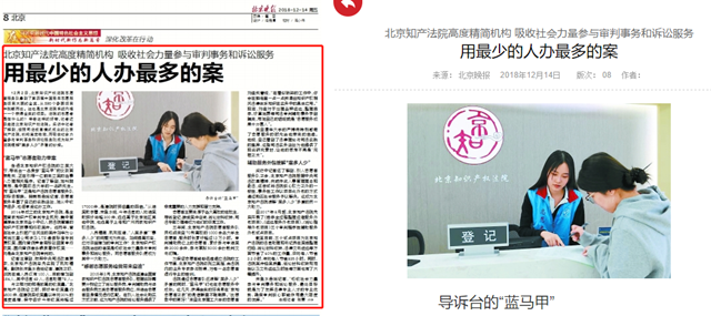 12月2日,北京知識產權法院志愿者服務隊拿到了第四屆中國青年志愿服務項目大賽的金獎,從590個參賽項目中脫穎而出。這也是北京法院系統內唯一一個獲得金獎的項目。法院的志愿者是做什么的?帶著這樣的好奇,記者近日走進北京知識產權法院。采訪中記者了解到,按照司法改革模式成立的北京知產法院,機構高度精簡,而吸收社會力量參與審判事務和訴訟服務則成為知產法院緩解“案多人少”矛盾的妙招。
