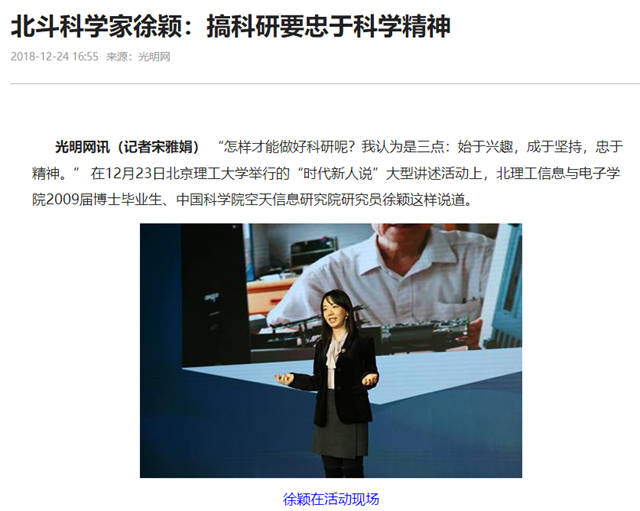 【光明網】北斗科學家徐穎:搞科研要忠于科學精神