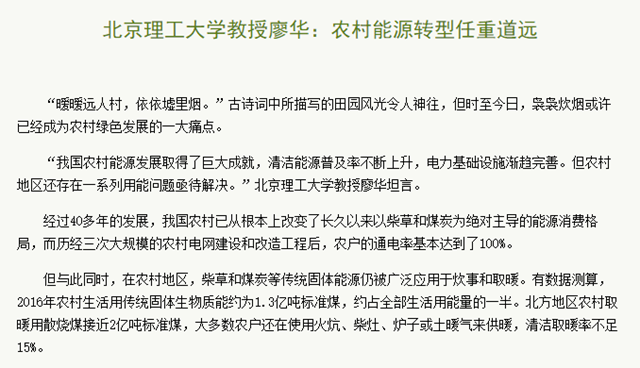 原文標題:北京理工大學教授廖華:農村能源轉型任重道遠