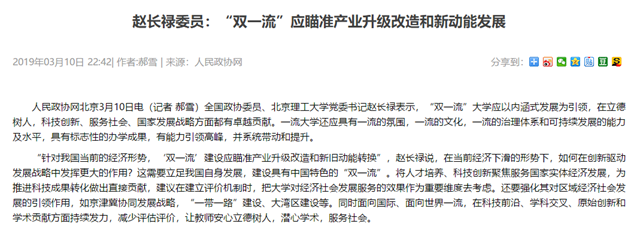 原文標題:趙長祿委員:“雙一流”應瞄準產業升級改造和新動能發展
