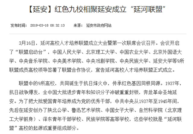 【延安市政府網】紅色九校相聚延安成立“延河聯盟