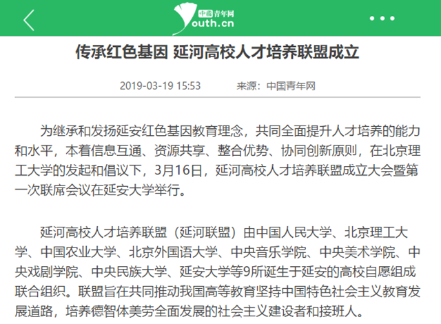 【中國青年網】傳承紅色基因 延河高校人才培養聯盟成立
