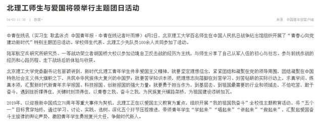 【中青在線】北理工師生與愛國將領舉行主題團日活動