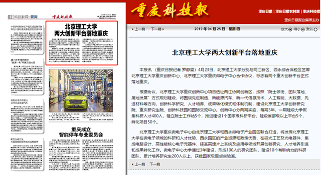 【重慶科技報】北京理工大學兩大創新平臺落地重慶