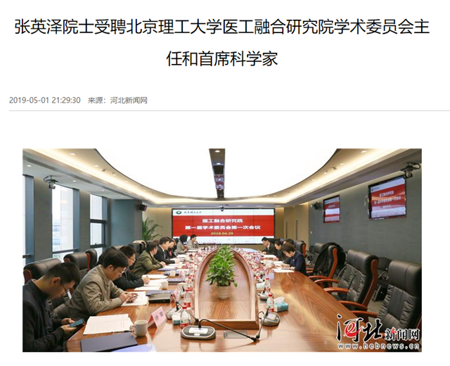 【河北新聞網】張英澤院士受聘北京理工大學醫工融合研究院學術委員會主任和首席科學家