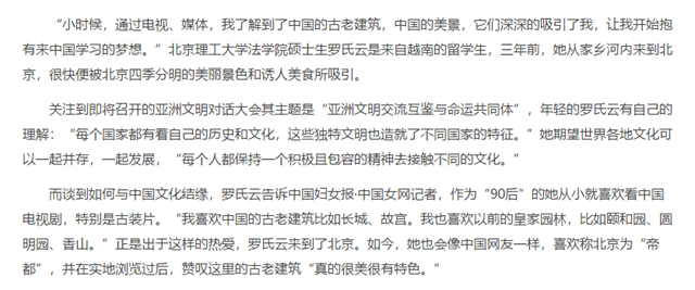 【中國女網】北理工越南留學生羅氏云:看中國電視劇不再需要字幕是最開心的事情