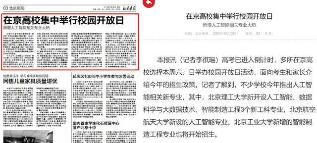 高考已進入倒計時,多所在京高校選擇本周六、日舉辦校園開放日活動,面向考生和家長介紹今年的招生政策。記者了解到,不少學校今年推出人工智能相關新專業,其中,北京理工大學新開設人工智能、數據科學與大數據技術、智能制造工程3個新工科專業,北京航空航天大學新設的人工智能專業、北京工業大學新增的智能制造工程專業也將開始招生。