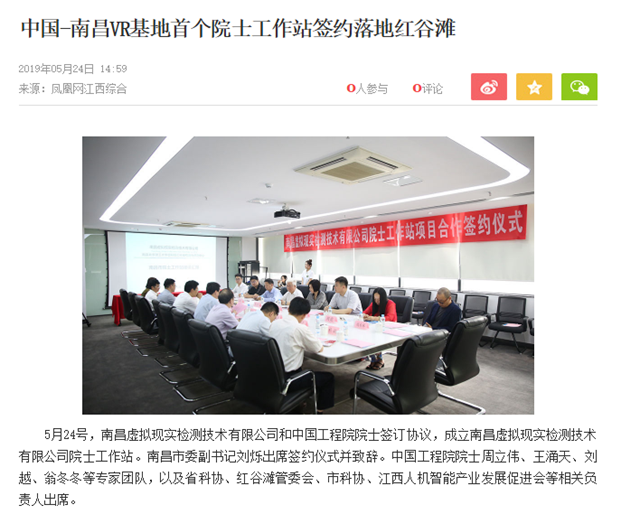 【鳳凰網(wǎng)】中國-南昌VR基地首個院士工作站簽約落地紅谷灘