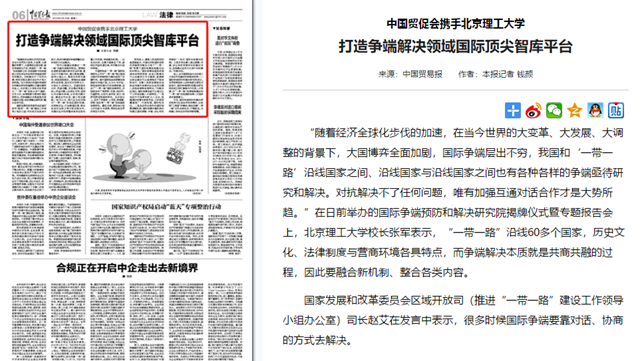 【中國貿(mào)易報(bào)】中國貿(mào)促會(huì)攜手北京理工大學(xué) 打造爭端解決領(lǐng)域國際頂尖智庫平臺(tái)