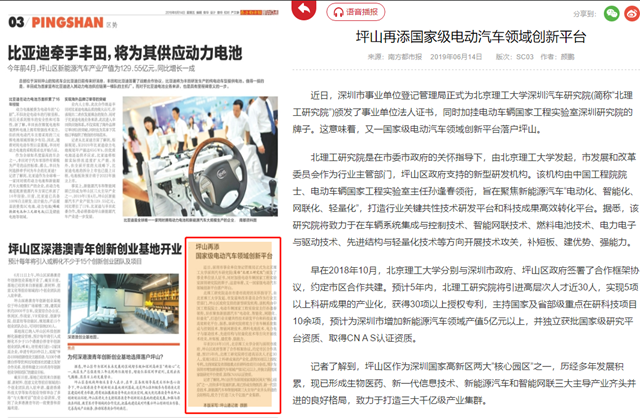 【南方都市報(bào)】坪山再添國家級(jí)電動(dòng)汽車領(lǐng)域創(chuàng)新平臺(tái)