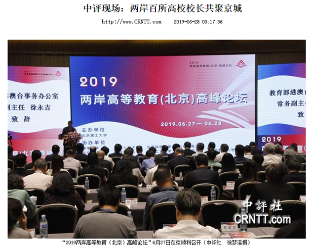 由北京理工大學主辦的“2019兩岸高等教育(北京)高峰論壇”6月27日在京順利召開。本屆論壇以“兩岸融合、共創一流”為主題,旨在凝聚兩岸教育新共識,打造交流合作新平臺,全面推動一流大學和一流學科建設。