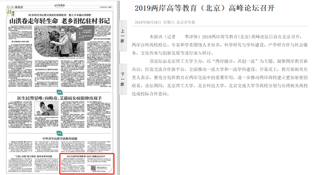 【北京青年報】2019兩岸高等教育(北京)高峰論壇召開