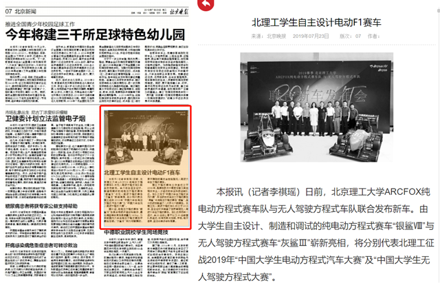 【北京晚報】北理工學生自主設計電動F1賽車