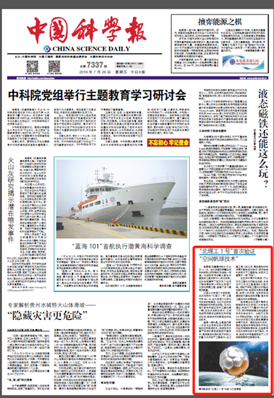 【中國科學(xué)報(bào)】“北理工1號”首次驗(yàn)證“空間帆球技術(shù)”