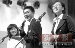 前晚,對外經濟貿易大學,第三屆北京高校主持人大賽中,4號選手北京理工大學的劉艷(左)獲得一等獎,2號選手清華大學的劉浩宇(中)和5號選手北京航空航天大學的劉穎(右)獲得二等獎。由數十所首都高校參與的此次大賽總決賽當天落幕。這項完全由學生發起、學生操辦的比賽3年來得到了大學生的青睞。本報記者薛珺王薈攝影報道