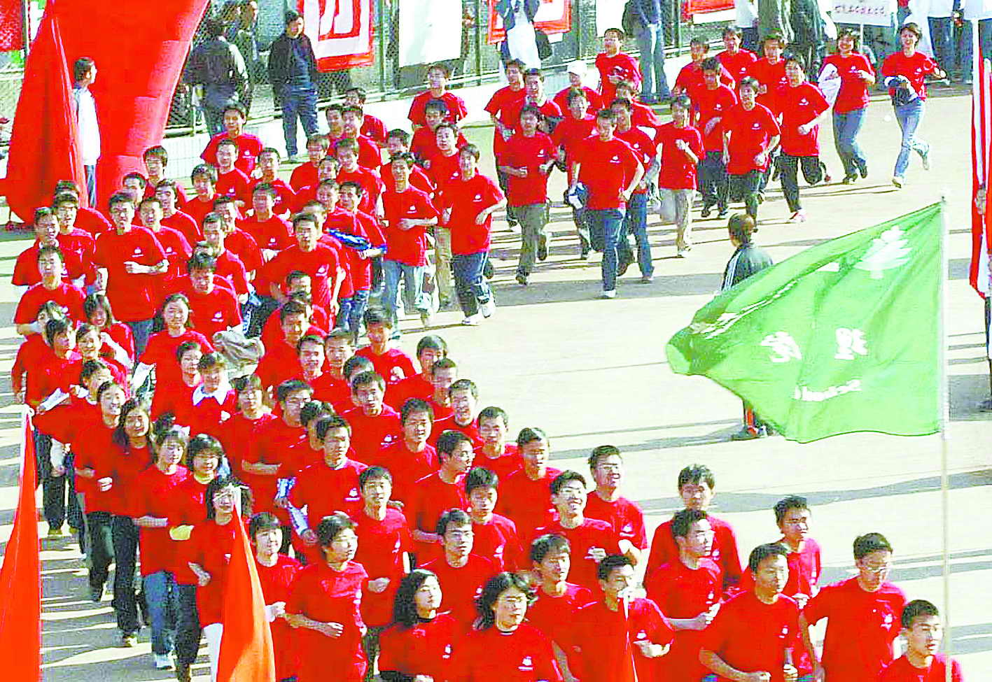 北京理工大學“奔向2008”學生健身長跑活動日前起跑。學生們計劃從現在到2008年8月8日累計跑完2008公里,既鍛煉身體又培養了奧運精神。本報記者方非攝RJ195