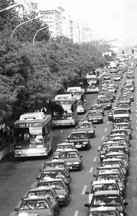 圖一:機動車的高速增長,加速了環境污染,汽車尾氣已成為北京大氣污染的首要污染源。