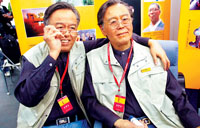昨天,由北京理工大學承辦的第19屆“IEEE/RSJ智能機器人與系統”國際會議開幕。來自世界各國的頂級仿人機器人在北京國際會議中心亮相。掃地機器人、排爆機器人、舞蹈機器人……各式各樣的仿人機器人讓觀眾大開眼界。在西安超人雕塑研究院展臺前,很多觀眾對以假亂真的機器人驚訝不已。展出的機器人是參照研究院院長鄒仁倜的模樣設計的,當鄒仁倜與機器人坐到一起時(見上圖),即使近在咫尺的觀眾也分不清真假。機器人還不時眨眼、轉動眼珠,做著自我介紹。仔細看這個機器人,它的皮膚上還有皺紋、老年斑。鄒院長說,這款機器人是研究院的第三代仿人機器人,它的皮膚是用柔軟的硅橡膠制成的。這種高仿真機器人可以用在博物館和公園等娛樂場所做引導員,還可以用于再現歷史場景。美國迪斯尼樂園的林肯獨立宣言講話場景就是通過這種機器人再現的。現在,國家博物館蠟像館已經與西安超人雕塑研究院取得聯系,計劃用仿人機器人再現“開國大典”。